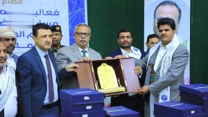 وفي التكريم، الذي تخلله قصيدة متميّزة للشاعر عبدالسلام ووصلات إنشادية وأوبريت عبّرت عن المناسبة، تم تسليم درع الوفاء لأسرة الرئيس الشهيد صالح الصماد.