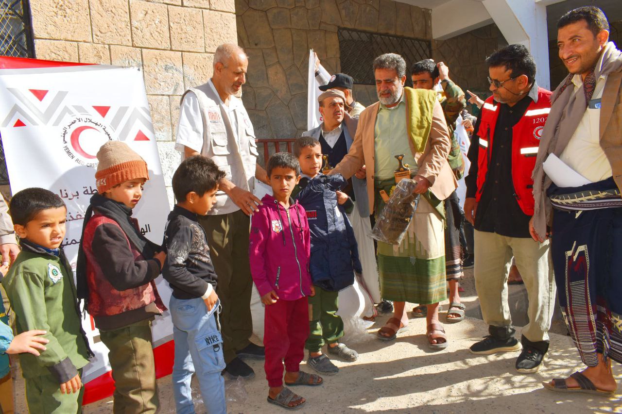 دشنت جمعية الهلال الأحمر اليمني فرع محافظة البيضاء اليوم، مشروع توزيع 1500 جاكت شتوي على طلاب مدارس التعليم العام لطلاب وطالبات الصفوف الأولى المرحلة الأساسية بمدينتي البيضاء ورداع خلال العام الدراسي 1447 هجرية.