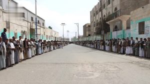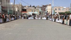 وردد المشاركون في الوقفات بمركز المحافظة والمديريات شعار البراءة وهتافات الحرية والنفير والجهاد.. مؤكدين استمرار التعبئة العامة والاستعداد لخوض جولة الصراع مع الأعداء وعملائهم.