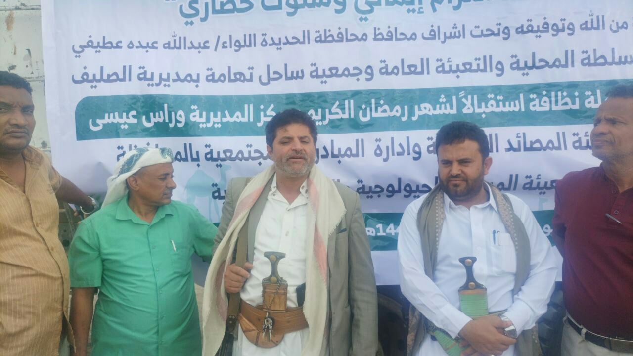 وفي التدشين الذي أقيم بمركز المديرية وراس عيسى، بحضور مدير المديرية ماجد عميش ونائبه مسؤول التّعبئة العامة عبدالعزيز الهاروني، ألقيت كلمات أكدت، أن انطلاق هذه المبادرة بمشاركة جمعية ساحل تهامة وهيئة المصائد السمكية، وادارة المبادرات المجتمعية بالمحافظة، وهيئة المساحة الجيولوجية والثروات المعدنية، يعكس سلوك وأخلاق المجتمع اليمني النابعة من هويته الإيمانية الأصيلة.