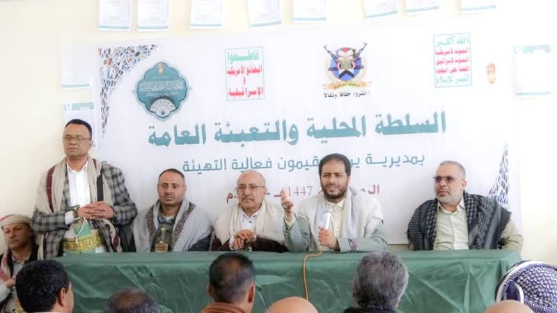 ناقش لقاء موسع في مدينة يريم بمحافظة إب، برئاسة مسؤول التعبئة العامة بالمحافظة عبد الفتاح غلاب، وضم مسؤول القطاع التربوي بالمحافظة محمد الغزالي، الجوانب المتصلة بالاستعداد والتهيئة لإقامة المجالس الرمضانية والدورات الصيفية 1447هـ.