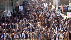 وأكد بيان صادر عن المسيرات، استمرار الشعب اليمني في موقفه الثابت والداعم والمساند للشعب الفلسطيني ومجاهديه، والجهوزية الكاملة لأي جولة قادمة من المواجهة مع العدو الإسرائيلي وأعوانه، والاستمرار في هذا الموقف حتى تحقيق النصر.