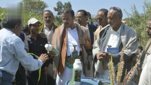 دشن وكيل محافظة تعز لشؤون التنمية عبدالواسع الشمسي، اليوم، استخدام المادة الحيوية المصنعة محلياً لمكافحة دودة الحشد الخريفية في مزارع الذرة الشامية في منطقتي ورزان البدو وضبوان أسفل في مديرية خدير.