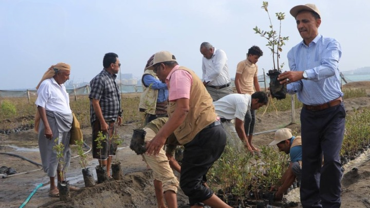 دشنت الهيئة العامة لأبحاث علوم البحار والأحياء المائية، اليوم، بساحل منطقة منظر في مديرية الحوك بمحافظة الحديدة، مبادرة زراعة ألف شتلة من أشجار المنجروف “الشورى”، تحت شعار “اهتزت وربت”.