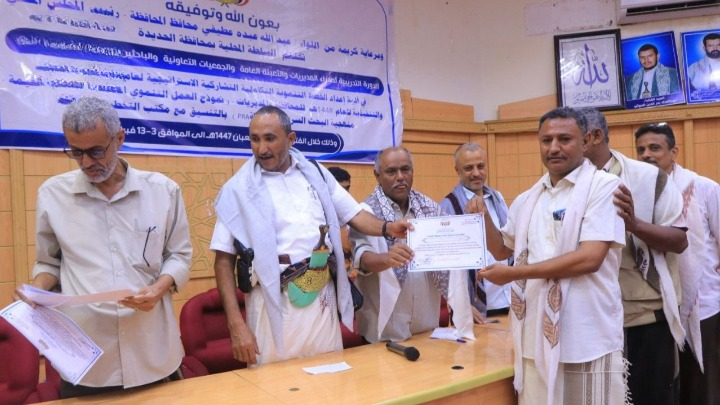 اختتمت بمحافظة الحديدة اليوم دورة تدريبية حول آلية إعداد الخطط التنموية التكاملية التشاركية الاستراتيجية للعام 1448هـ، والخطط التنفيذية للمحافظة والمديريات.