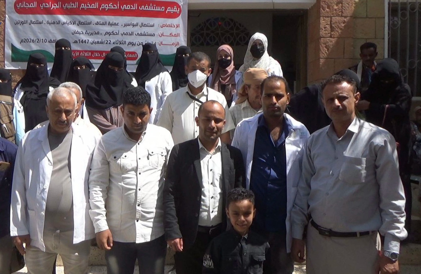دُشن في مستشفى الدمي احكوم بمديرية حيفان في محافظة تعز، اليوم، المخيم الطبي الجراحي المجاني لإجراء عمليات استئصال البواسير والأكياس الدهنية واللوزتين وعملية الفتاق،