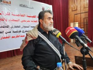 وشدد،أهمية دور التربويين في التوعية الطلاب بثقافة ومشروع الشهيد القائد وترسيخ قيمة و مبادئة في أوساط المجتمع.باعتباره مشروعا نهضويا تنويريأ مخلصاً للأمة و ركيزة النهوض بواقعها.،،مشيداً بما قدمته مدرسة ابى ذر الغفاري العلمية المغلقة من نجاح وعطاء في ترسيخ المفاهيم القرآنية ومبادئ الدين الحنيف في نفوس الطلاب الملتحقين بها بالمحافظة.