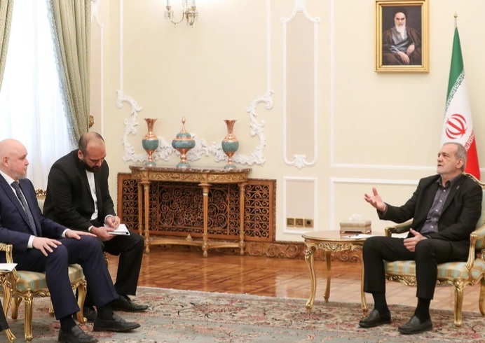 وشدد بزشكيان، خلال لقائه وزير الطاقة الروسي، سيرغي سيفيليف، على أن الدول الإقليمية ينبغي أن توسع علاقاتها وتنسق فيما بينها على نحو يغنيها عن تدخل الأطراف من خارج الإقليم في تقرير مصير المنطقة، بحسب وكالة الأنباء الإيرانية الرسمية.