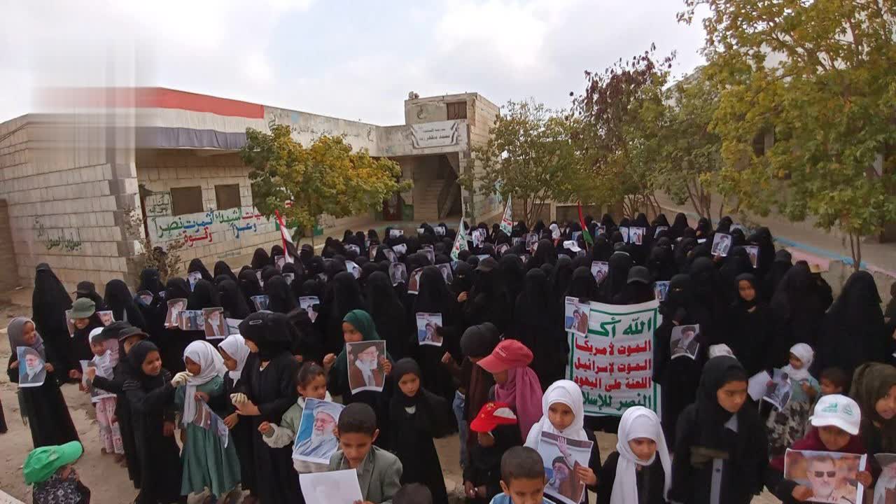 ورفعت شعارات مساندة ومتضامنة مع الشعب الإيراني ومناهضة للعدو الصهيوني، الأمريكي، مؤكدات موقف الشعب اليمني الثابت في مواجهة العدوان الأمريكي والصهيوني، تجسيداً للوحدة الإسلامية.
