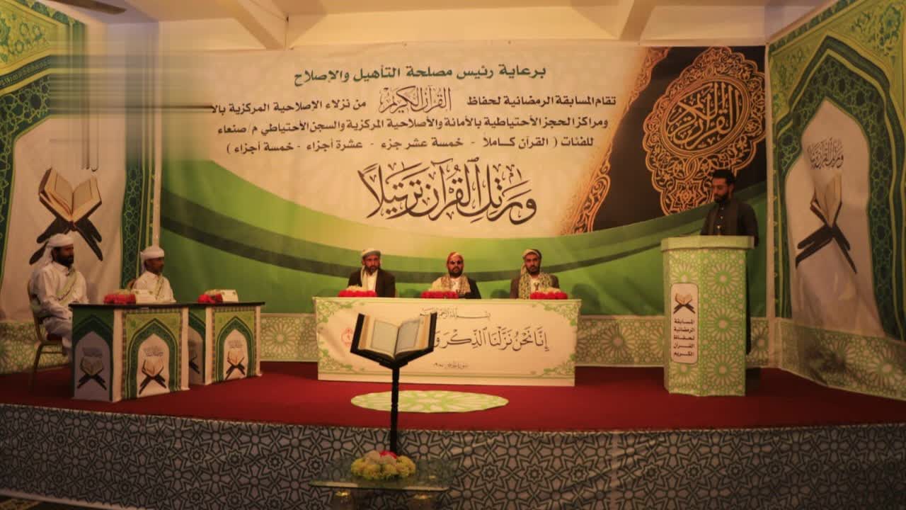 وتستمر المسابقة سبعة أيام بمشاركة تسعة وخمسين نزيلًا يتنافسون في فئات: حفظ القرآن كاملًا، خمسة عشر جزءًا، عشرة أجزاء، وخمسة أجزاء، وذلك ضمن برامج المصلحة وتنفيذًا لتوجيهات القيادة الثورية والسياسية بالاهتمام بالإصلاحيات وتحويلها إلى مراكز للتأهيل وفق الرؤية القرآنية.