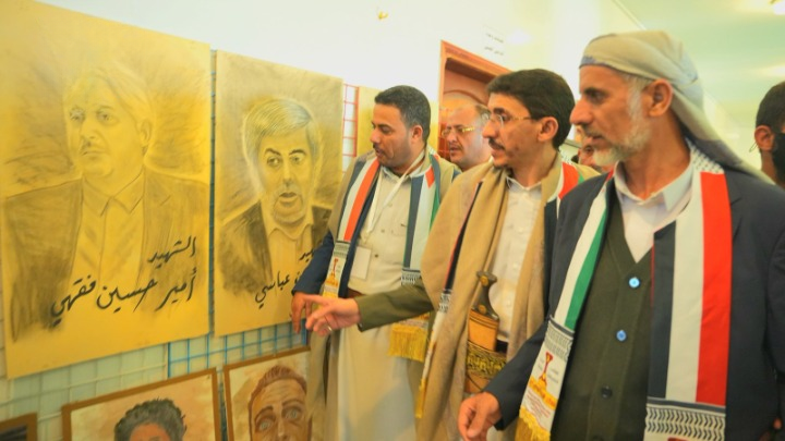 وأوضحا أن المعرض يتضمن صورًا ومجسمات للشهداء من فصائل المقاومة الفلسطينية، والعدوان الأمريكي، الصهيوني على اليمن، وأبرزهم رئيس حكومة التغيير والبناء أحمد غالب الرهوي ورفاقه الوزراء ورئيس هيئة الأركان العامة، وكذا صور توثق تضحيات شهداء اليمن في مواجهة العدو الأمريكي، الصهيوني، وما سطروه من ملاحم بطولية في معركة “الفتح الموعود والجهاد المقدس”، نصرة للشعب الفلسطيني ودعمًا لقضيته وإسنادًا لغزة.
