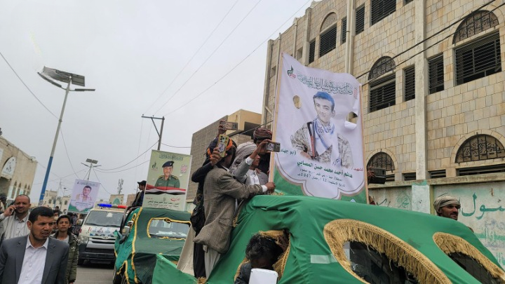 وخلال التشييع الذي شارك فيه مسئول التعبئة في المحافظة حمود المغربي، ووكيل المحافظة أحمد الأخفش، أشاد المشيعون بتضحيات الشهداء في مقارعة قوى العدوان والاستكبار العالمي.