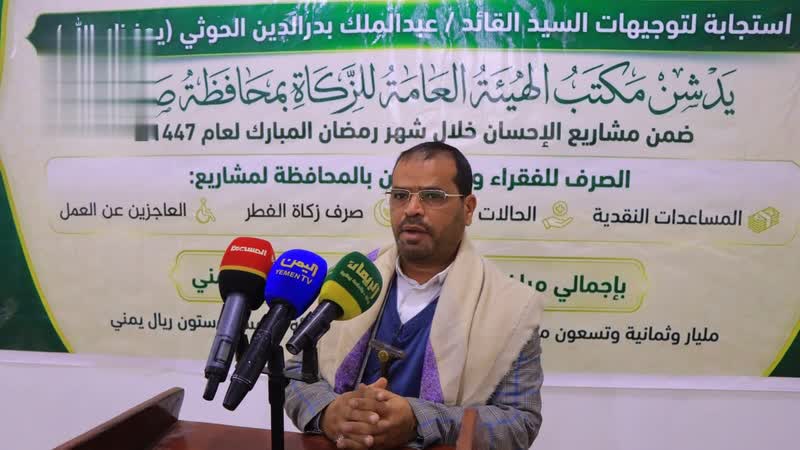 دّشن مكتب الهيئة العامة للزكاة بمحافظة صعدة اليوم، مشاريع المساعدات النقدية للعاجزين، والمساعدات للحالات الحرجة، وصرف زكاة الفطر، ومساعدات للفقراء والمساكين في إطار مشاريع الإحسان الرمضانية في المحافظة للعام 1447هـ.
