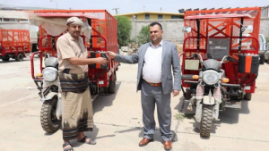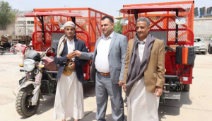 كما شملت آليتي نظافة (دراجات نارية ذات صناديق) لمدينة إب، ودراجتين لمديرية القاعدة، ودراجتين لمديرية حزم العدين، وأربع لمدينة معبر في محافظة ذمار بالإضافة إلى خمس دراجات لمديرية جبل الشرق.