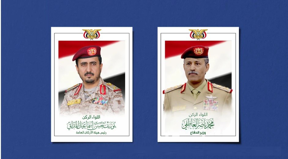 رفع وزير الدفاع اللواء الركن محمد العاطفي، ورئيس هيئة الأركان العامة اللواء الركن يوسف المداني، برقية تهنئة إلى فخامة المشير الركن مهدي المشاط رئيس المجلس السياسي الأعلى – القائد الأعلى للقوات المسلحة وذلك بمناسبة حلول عيد الفطر المبارك ١٤٤٧ فيما يلي نصها: