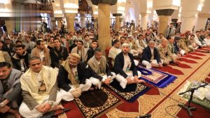 وأشار إلى “إقبال الناس في الشهر الفضيل إلى بيوت الله منيبين، مستغفرين، تالين لكتاب الله، حاضرين لدروس العلم والفقه والاستماع لمحاضرات السيد القائد، والذي يبصرنا ويرشدنا إلى الخير والصلاح، لله الحمد على فضله وكرمه وجوده وإحسانه”.