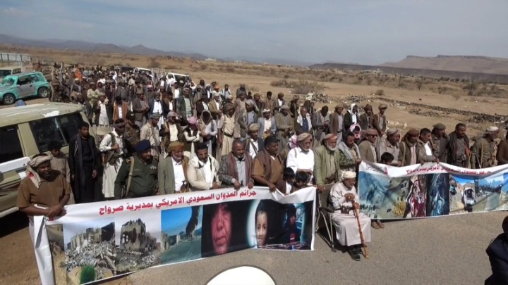 وفي مديرية حريب القراميش أقيمت وقفة قبلية بالمناسبة، أوضح فيها مدير المديرية صادق هيسان، أن جرائم العدوان ومنها جريمة استهداف عرس نساء بني هيسان ستظل حية في ذاكرة أبناء الشعب اليمني.