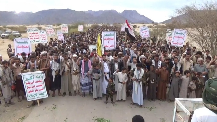وخرج أبناء مديرية مجزر في مسيرة حاشدة جددوا خلالها الموقف الإيماني الثابت والمبدئي للشعب اليمني في الوقوف الى جانب قضايا الأمة وفي مقدمتها القضية الفلسطينية، ومواجهة الاستكبار العالمي.
