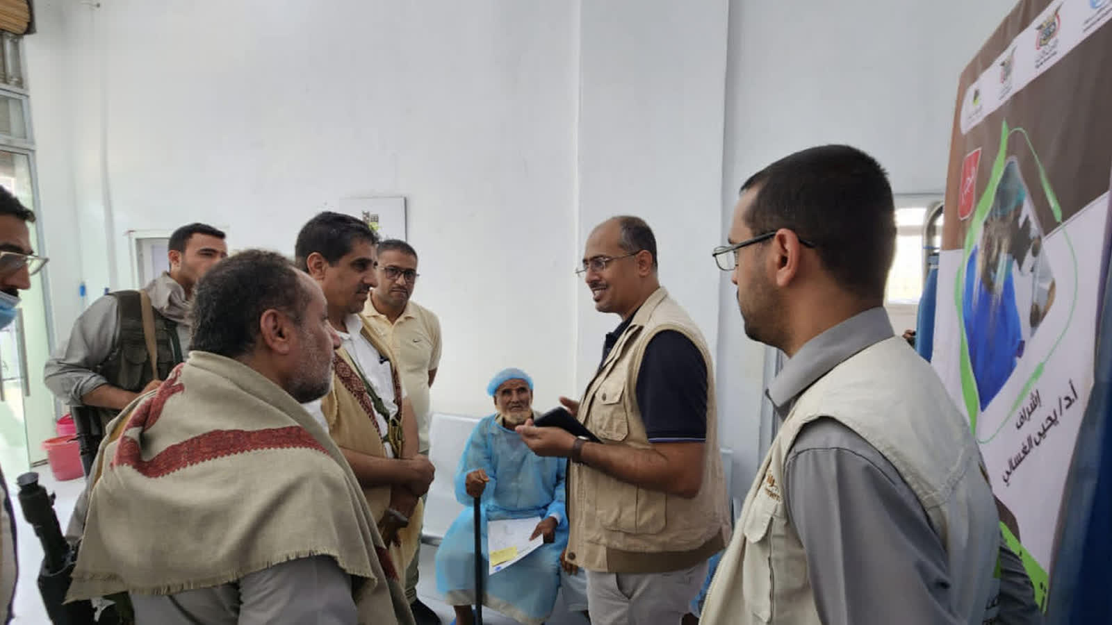 واستمع الوكيل البشري، خلال زيارته للمخيم الذي تقيّمه مؤسسة جرامين يمن، من مدير المؤسسة أحمد المحفدي، إلى شرح مفصل عن طبيعة الخدمات الطبية المجانية المقدمة للمرضى من أبناء منطقة المعرس والمناطق المجاورة، والتي تشمل الفحوصات، وصرف الأدوية، وإجراء العمليات الجراحية النوعية لإزالة المياه البيضاء وزراعة العدسات.