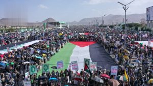 وجددت الحشود البشرية الهادرة التي رفعت أعلام اليمن وفلسطين ولبنان وإيران والعراق، وشعارات الحرية والجهاد والمقاومة، التفويض المطلق لقائد الثورة السيد عبدالملك بدر الدين الحوثي، والتأييد والدعم الكامل لعمليات القوات المسلحة.