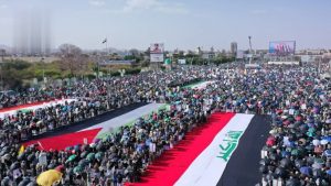 وصدحت الجماهير المحتشدة بشعارات (إغلاق الأقصى خطير.. يا أمة وجب النفير)، (يا أمة هذا أقصانا.. والمجرم فيه تحدانا)، (قانون الأسرى دليل.. عن وحشية إسرائيل)، (صمتك يا أمة قد جرأَ.. إسرائيل لقتل الأسرى)، (قل لحكومات إبستين.. لن نترك شعب فلسطين)، (الشعب الإيراني المسلم.. لن يخضع لترامب المجرم)، (بثبات الشعب الإيراني.. فشل المشروع الشيطاني).