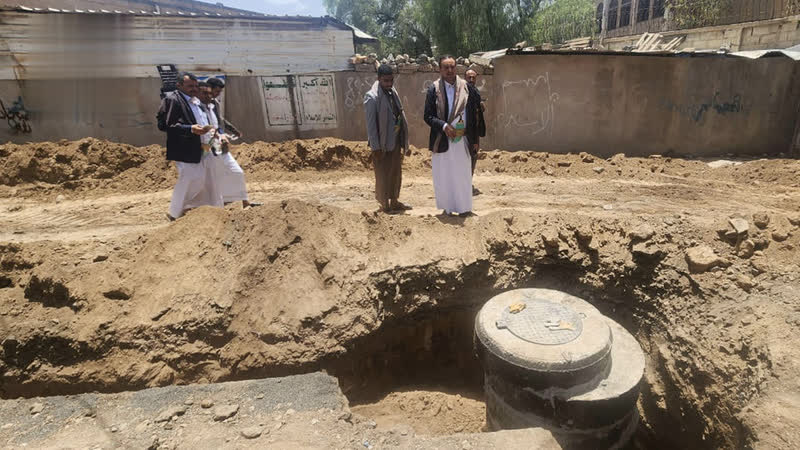 تفقد أمين العاصمة الدكتور حمود عباد، اليوم، سير العمل في مشروع شبكة الصرف الصحي لحي النهضة بمديرية الثورة.