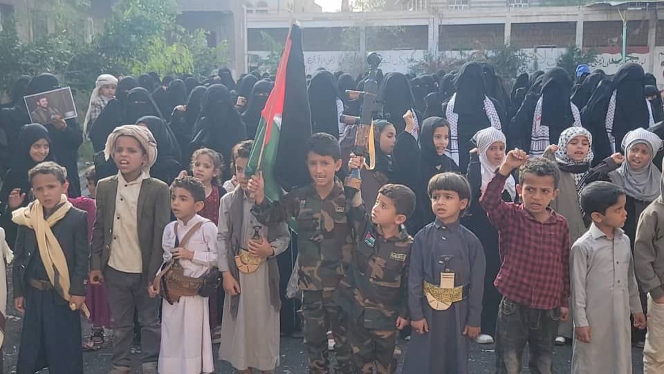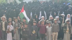 وقفة نسائية حاشدة في البيضاء تأييدًا للمقاومة وتنديدًا بالطغيان الأمريكي الصهيوني