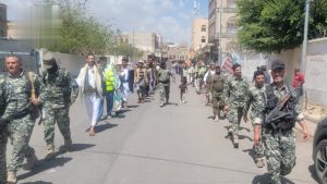 نظم في مديرية الوحدة بأمانة العاصمة، اليوم، وقفة ومسير عسكري وشعبي حاشد مباركة للجمهورية الإسلامية في إيران وحزب الله اللبناني والمقاومة العراقية، النصر التاريخي على طاغوت الأرض أمريكا وإسرائيل.