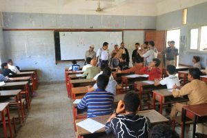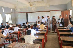 وفي السياق تفقد وكيل اول المحافظة ومرافقوه، سير اختبارات الشهادة الأساسية في مركز عمار بن ياسر بمديرية الميناء، واستمعوا إلى شرح حول الجهود المبذولة لإنجاح الاختبارات.