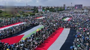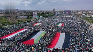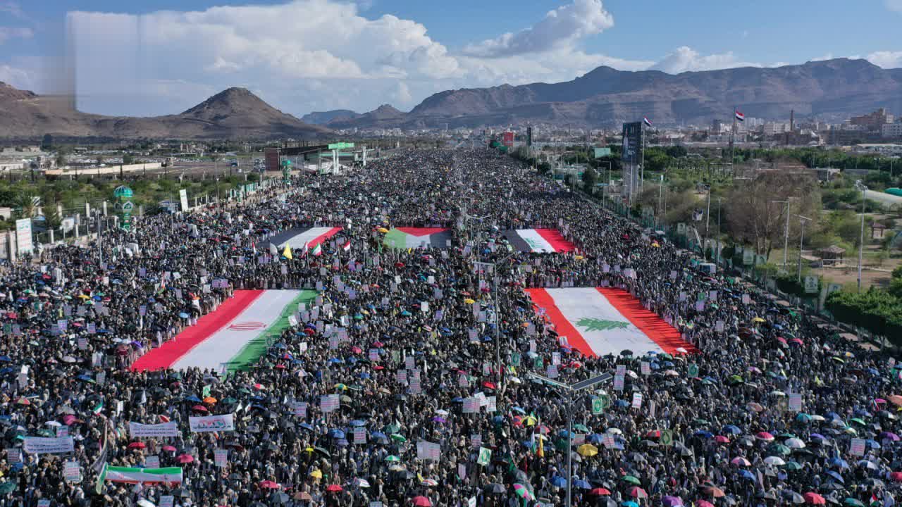 وأعلنت الحشود المليونية، الاستمرار في النفير والتعبئة والتحشيد ورفع الجاهزية والاستعداد لكل الخيارات في مواجهة الغطرسة الصهيونية ونصرة قضايا الأمة في مقدمتها القضية الفلسطينية.. مؤكدة أن وحدة الساحات هي الضمانة الحقيقية لمواجهة الأعداء وإفشال مخططاتهم.