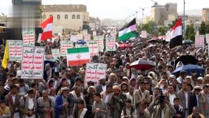 ورفعوا أعلام اليمن وفلسطين ولبنان وإيران والعراق، مؤكدين استمرار الموقف الثابت والمبدئي في نصرة الشعب الفلسطيني وكل قضايا الأمة، والتمسك بخيار مواجهة المشروع الصهيوني، وتعزيز معادلة الردع ووحدة الساحات.