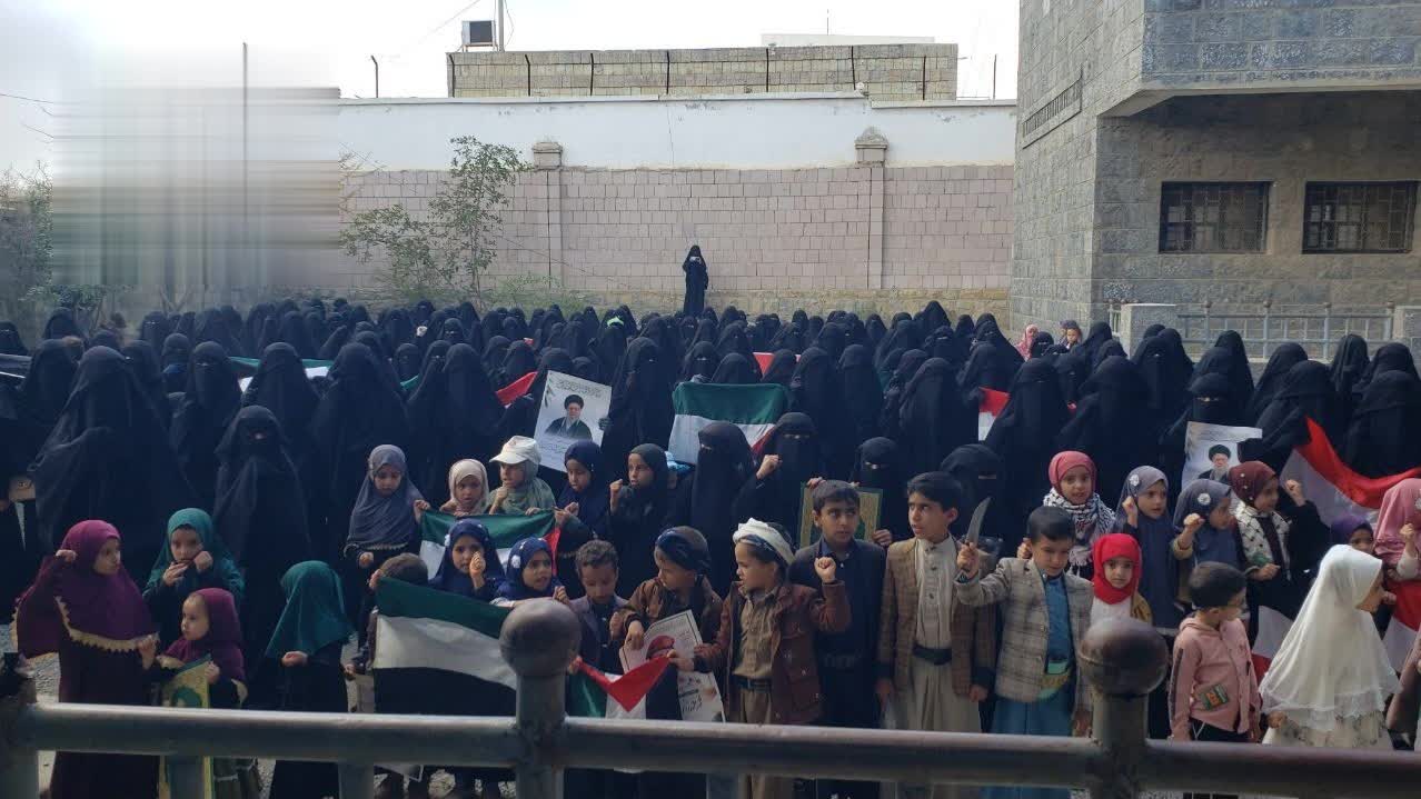 نظمت الهيئة النسائية الثقافية بمحافظة حجة وقفات في عدد من المديريات تحت شعار “شكرًا لله واحتفاءً بالنصر.. ساحاتنا واحدة في مواجهة الصهيونية”.