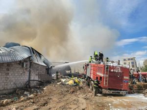 وأوضحت أن الحريق اندلع في “هنجر” الإنتاج الذي يحتوي على مواد خام ومخازن وقود، قبل أن يمتد إلى مخازن المنتج الجاهز، مبينة أن سرعة انتشار النيران تعود إلى طبيعة المواد المخزنة وكثافة المشتقات النفطية والمواد سريعة الاشتعال بالموقع.