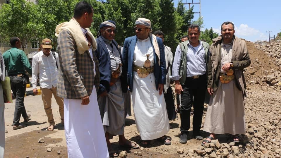 تفقد القائم بأعمال محافظ تعز أحمد المساوى اليوم، سير العمل بمشروع ترميم وصيانة وسفلتة طريق المنفذ الشرقي بجولة القصر.