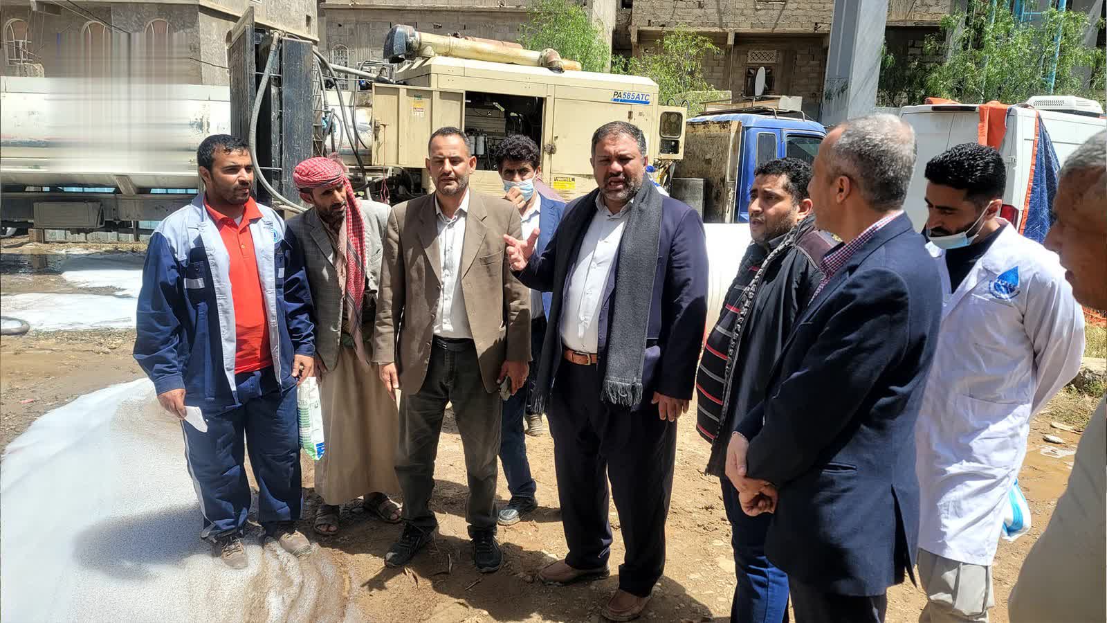 دشنت المؤسسة المحلية للمياه والصرف الصحي في أمانة العاصمة، اليوم، أعمال إعادة تأهيل وتعميق بئر سعوان في مديرية شعوب بتمويل ذاتي.