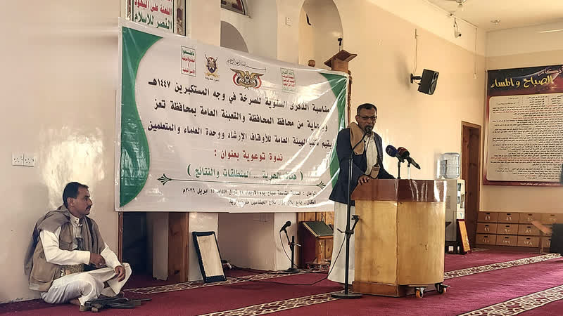 أقام مكتب الهيئة العامة للأوقاف والإرشاد بجامع بلال في محافظة تعز بالتنسيق مع وحدة العلماء والمثقفين اليوم، ندوة توعوية بعنوان “هتاف الحرية .. المنطلقات والنتائج”، بالذكرى السنوية للصرخة 1447هـ.