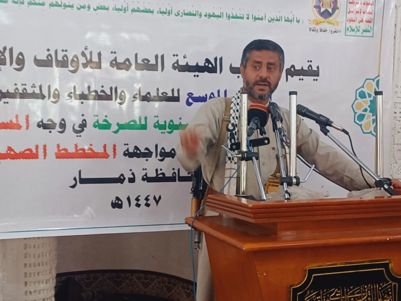 نظّم مكتب الهيئة العامة للأوقاف والإرشاد في محافظة ذمار، اليوم، لقاءً موسعاً للعلماء والخطباء والأئمة والمثقفين، تدشيناً لأنشطة وفعاليات الذكرى السنوية للصرخة في وجه المستكبرين ومسؤولية الأمة في مواجهة المخطط الصهيوني.