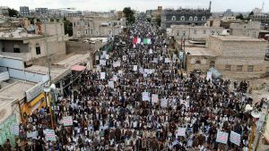وأكد المشاركون في مسيرات الجوف أن الأمة بكل شعوبها وأنظمتها أمام مسؤولية عظيمة في مواجهة الطغيان الأمريكي الإسرائيلي الذي يسعى لاستباحة الجميع، واحتلال أرضهم، والاستيلاء على كل ثرواتهم ومقدراتهم.