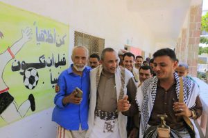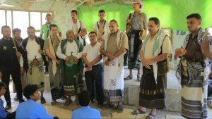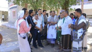 رافقهم خلال الزيارة، امين محلي مديرية الحالي الشيخ صالح الحرازي، ومدير الإدارة التعليمية بالحالي حسن وهبان، وثقافي المديرية ابو نبيل الوجيه.