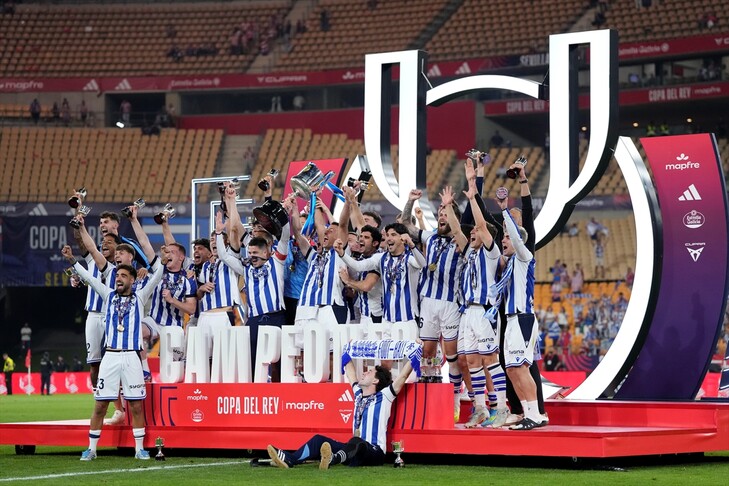 توج فريق ريال سوسييداد بلقب كأس ملك إسبانيا لكرة القدم للمرة الرابعة في تاريخه، بفوزه في المباراة النهائية على فريق أتلتيكو مدريد ،مساء السبت، بركلات الترجيح بنتيجة 4 / 3 بعد انتهاء الوقتين الأصلي والإضافي بالتعادل الإيجابي بهدفين لكل منهما.