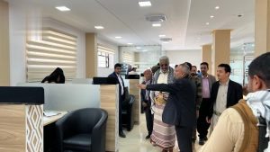 وطاف قحيم ومعه وزير الخدمة المدنية بأقسام المركز واستمع من القائمين على المركز إلى إيضاح عن آلية العمل في تقديم الخدمات للمواطنين والموظفين وإنجاز المعاملات وفق مسار محدد ومزمن.