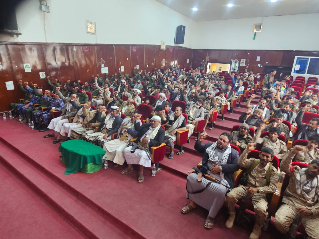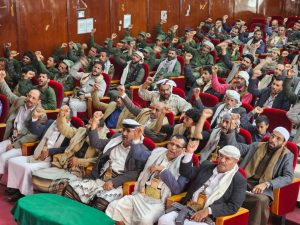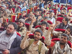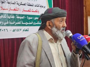 نظم محور الصومعة ومسورة في محافظة البيضاء، اليوم، فعالية خطابية وثقافية إحياءً للذكرى السنوية للصرخة في وجه المستكبرين للعام 1447هـ، برعاية قائد المنطقة العسكرية السابعة اللواء ناصر صبحان المحمدي، وتحت شعار (الشعار سلاح وموقف).