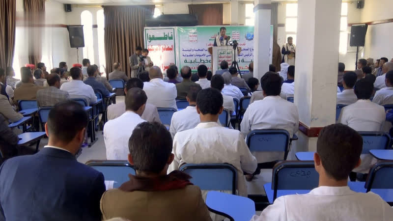 نظم القطاع الصحي وهيئة مستشفى الشهيد الصماد ومستشفى الامومة والطفولة بمحافظة عمران، فعالية خطابية إحياءً للذكرى السنوية للصرخة في وجه المستكبرين تحت شعار” الصرخة سلاح وموقف”.
