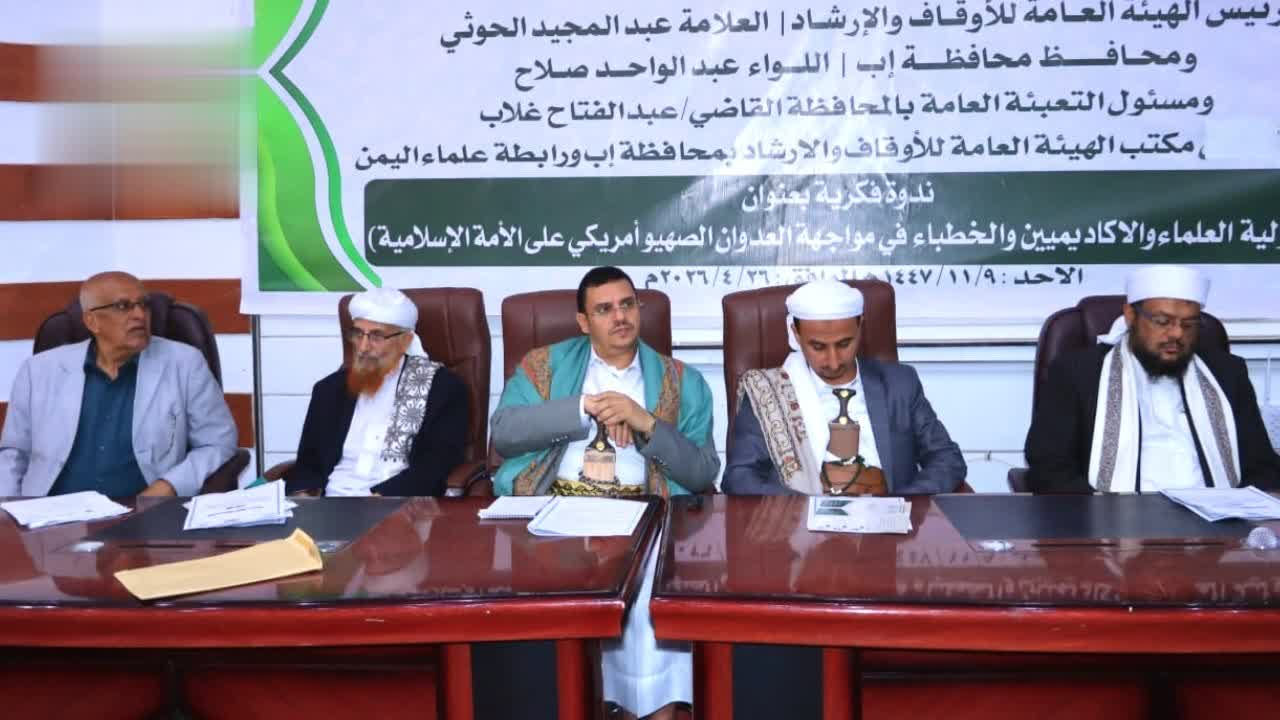 عُقدت بجامعة إب اليوم، ندوة فكرية بعنوان “مسؤولية العلماء والأكاديميين والخطباء في مواجهة العدوان الصهيوأمريكي”، نظمها مكتب هيئة الأوقاف والإرشاد بالمحافظة بالتعاون مع رابطة علماء اليمن.