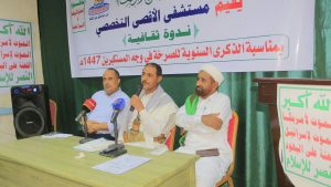 نظم مستشفى الأقصى التخصصي بمحافظة الحديدة اليوم، ندوة ثقافية بعنوان “الصرخة سلاح وموقف في وجه الأعداء”.