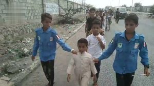 نظم طلاب مدرسة الشهيد أبو حرب الملصي الصيفية النموذجية بمربع السلخانة في مديرية الحالي بمحافظة الحديدة، اليوم، مسيراً راجلاً في إطار الأنشطة المعتمدة للملتحقين بالدورات الصيفية.