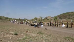 إلى ذلك اقيمت وقفة طلابية بقرية العارضة عزلة بني عراف تحت شعار قوله تعالى “براءة من الله ورسوله ” .