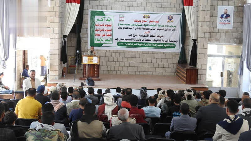 نظّمت فروع المؤسسة العامة للكهرباء – منطقة إب وشركة النفط اليمنية، والشركة اليمنية للغاز بمحافظة إب، اليوم، فعالية خطابية بالذكرى السنوية للصرخة، تحت شعار “الصرخة سلاح وموقف” في مواجهة قوى الاستكبار.