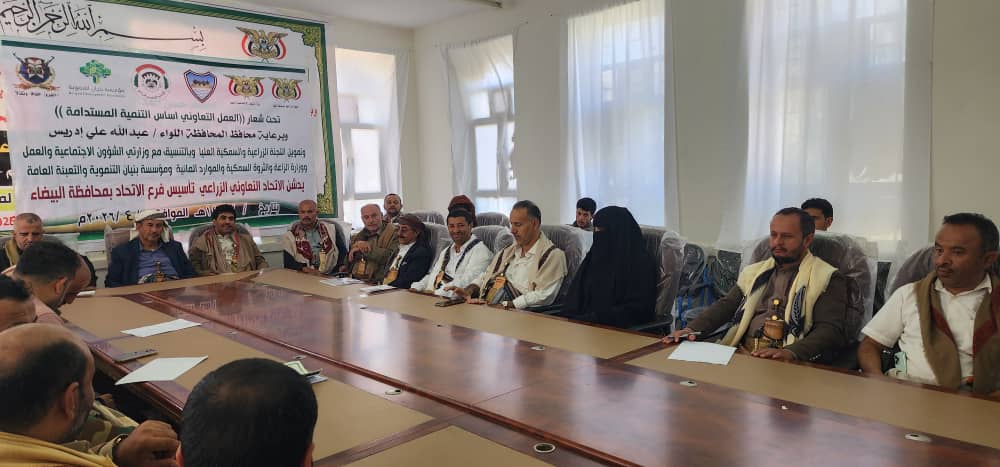 أُقيم اليوم في محافظة البيضاء حفل إشهار وتأسيس فرع الاتحاد التعاوني الزراعي بالمحافظة، تحت شعار «العمل التعاوني أساس التنمية المستدامة».