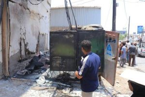أندلع حريق ظهر اليوم الخميس، بجوار محول التوزيع الكهربائي في شارع التحرير بمدينة الحديدة، بعد اشتعال أكوام نفايات متراكمة قرب غرفة المحول، ما أدى إلى امتداد النيران للكابلات المغذية للوحة التوزيع.
